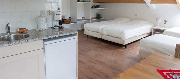 Daarnaast is het appartement, via een afsluitbare tussendeur, eenvoudig te verbinden met appartement de Hooizolder. Zo heeft u met een groep tot 10 personen alle ruimte om gezellig samen te zijn.