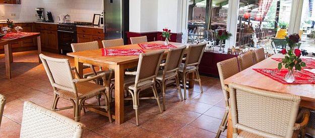 In de ruime boerenhuiskamer met zeer volledig ingerichte keuken, kunt u de ruimte indelen zoals u zelf wilt, passend bij het doel van uw bijeenkomst. U hebt door het grote raam altijd uitzicht op de koeien die zo hun eigen ritme hebben.